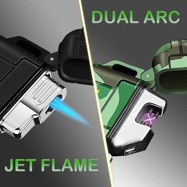 - WATERPROOF & WINDPROOF – These 2 lighters are also built with metal-ring sealed cover and locking clasp. IP56 Waterproof System allows them work well in rainy day and windy day. The arc lighter’s flameless design and the blue jet flame lighter both have a function of wind resistance. A necessary tactical gear for the outdoors